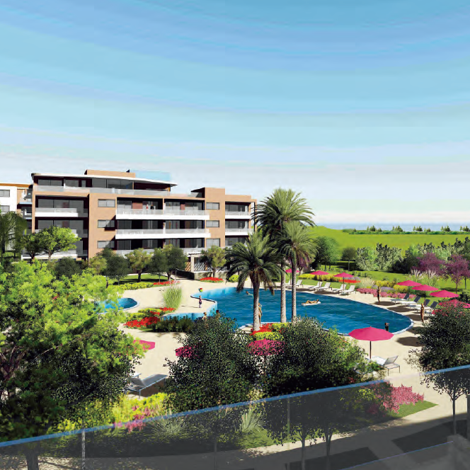 景觀花園面積超過75%,蜿蜒的小徑和池塘環(huán)繞著兩個大型自由式遊泳池,另有兒童遊泳池和娛樂場。停車位充足,同時提供接待和禮賓服務(wù),也有一個住客俱樂部、網(wǎng)球場和健康水療中心。