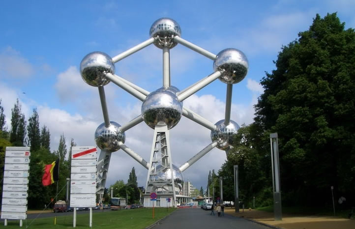 【原子球塔】是布魯塞爾的另一標誌性建築,是為了迎接世界博覽會而建造的,建築由9個18米直徑的大圓球組成,每個圓球代表一個原子,而圓球與連接圓球的鋼管組成一個正方形的圖案,這個正方形的圖案是鐵元素的晶體結(jié)構(gòu)放大1650億倍後的形狀,構(gòu)思之巧妙令人驚嘆不已。