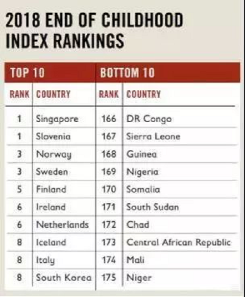 國際非政府組織“救助兒童會”(Save The Children)發(fā)布的2018《童年終結(jié)數(shù)據(jù)》報告中,新加坡被評為最適合孩童成長的國家。