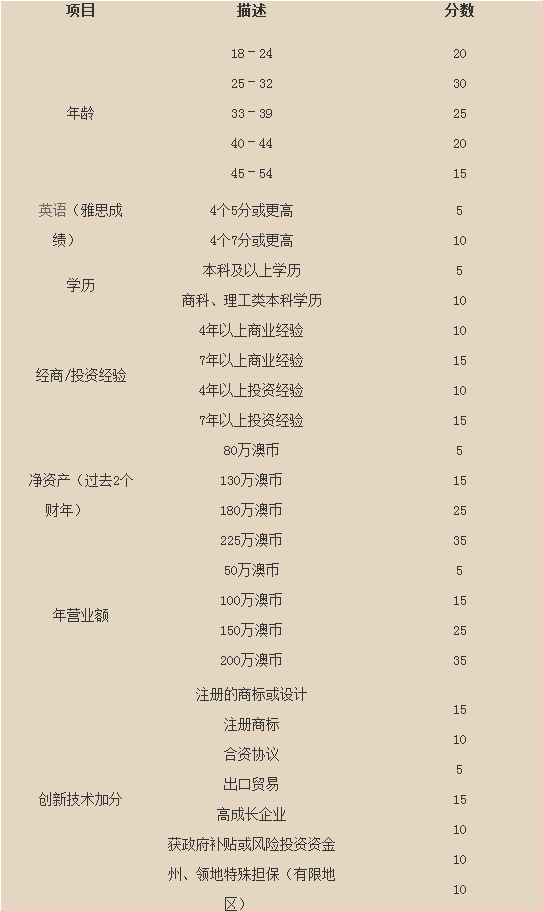 那澳大利亞188A投資移民評分制度包括哪些指標(biāo)?