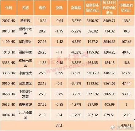 9月21日晚間,一條關(guān)于取消預(yù)售制的文件就像一枚重磅炸彈在業(yè)內(nèi)炸開(kāi)了鍋。由于A股中秋節(jié)休市,香港的中資地產(chǎn)股首當(dāng)其沖,截至收盤(pán),恒生中國(guó)內(nèi)地地產(chǎn)股全面下跌,市值一天蒸發(fā)逾636億港元。