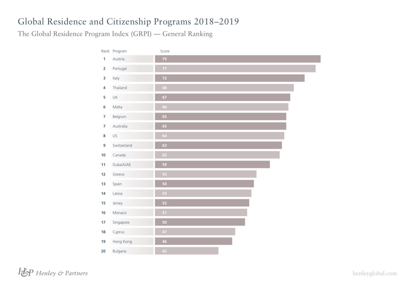 而今年10月公布了第四版《年度全球居留和入籍項目報告》。其中關(guān)于2018-2019年度投資居留項目,報告分析綜合十項指標(biāo)排名:名譽(yù)、處理時間與質(zhì)量、總費(fèi)用、生活質(zhì)量、承諾、成為公民的時間、納稅、成為公民的條件、可免簽或者落地簽的國家和投資條件。