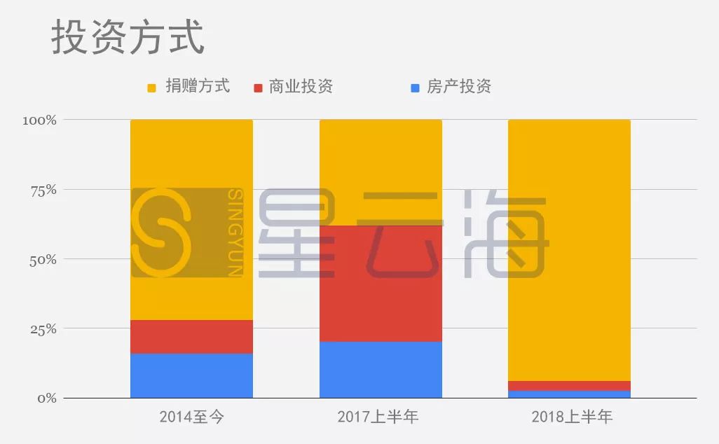 2018年上半年278名申請人中有261名選擇捐贈(zèng)途徑;只有7名申請人選擇房產(chǎn)投資、10名申請人選擇商業(yè)投資。相比之下,在2017年上半年,只有38%的申請者選擇捐贈(zèng)方式??偟膩砜?,自2014年以來至今,72%的申請都選擇了捐贈(zèng)方式。