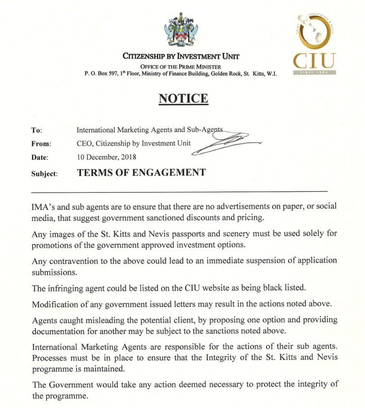 針對(duì)上月出現(xiàn)的一些負(fù)面新聞,圣基茨·尼維斯官方列出一份投資黑名單,其中包括投資者及CIP代理商,其中涉及代理商以低于法定許可價(jià)格進(jìn)行的虛假宣傳以及部分不合格的投資者。圣基茨·尼維斯投資移民部發(fā)布聲明:“違反規(guī)定的行為可能導(dǎo)致該國(guó)暫停投資移民申請(qǐng),侵權(quán)代理人會(huì)被列入圣基茨·尼維斯列入黑名單。”