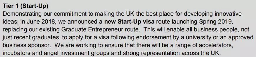 在最新發(fā)布的《移民白皮書(shū)》里,明確指出將于2019春季,正式推出“初創(chuàng)簽證”(Start-up visa),這一簽證將徹底取代現(xiàn)有的畢業(yè)生企業(yè)家移民簽證(Tier1 Graduate Entrepreneur visa)。