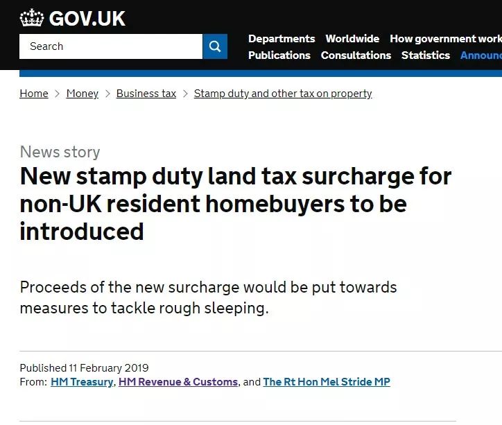 2019年2月11日晚間,英國稅務局HMRC在其官網公布了一份征稅細則,正式就“海外買家稅”開啟公眾咨詢。海外投資者在英國買房將面臨更高的印花稅。