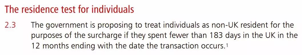 對于個人買家來說,以房產交易日往前推12個月(一年),如果在這一年內,個人買家在英國居住的時間少于183天,即為“海外買家”,需要支付額外印花稅。
