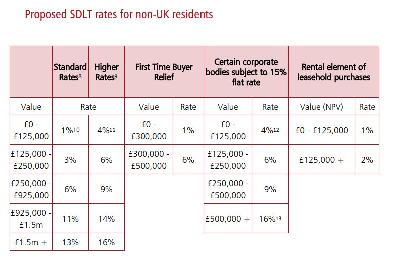 這份征稅草案長達42頁,主要是提議對在英格蘭和北愛爾蘭購買住宅的非本國居民征收1%的印花稅附加費,并將向英國社會公眾廣泛征集意見。