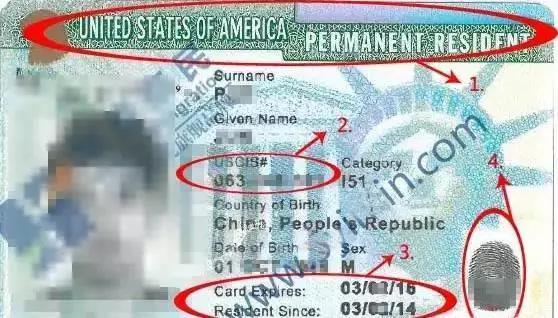 上圖是一個(gè)客戶近期剛拿到的綠卡樣本,在綠卡上有以下的重要信息: